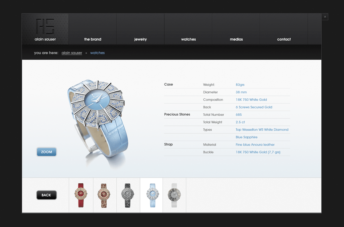 Alain Sauser wanted a website that was as unique as his creations. I designed an online experience, made of animations, transition effects and visual universes to give an immersive effect to the website while remaining easy to use.